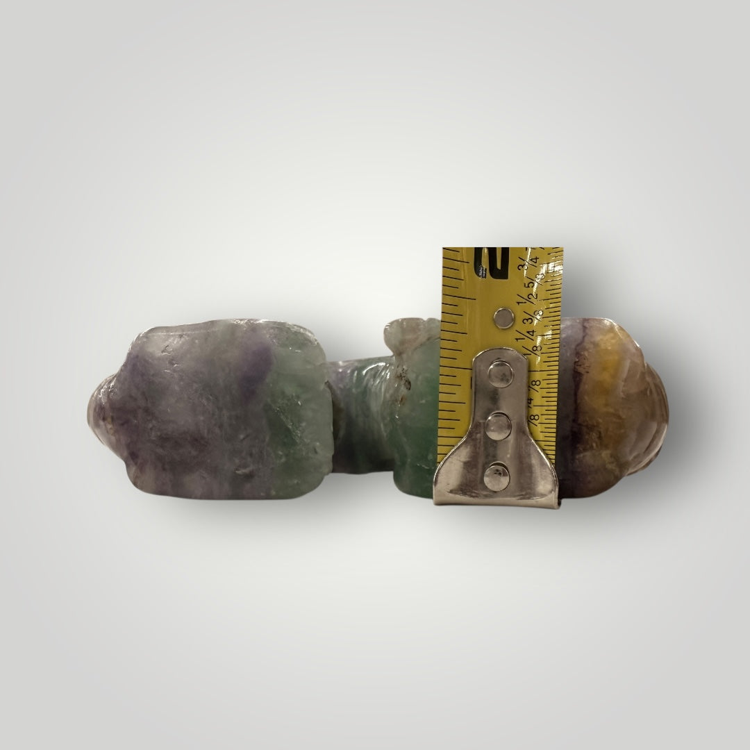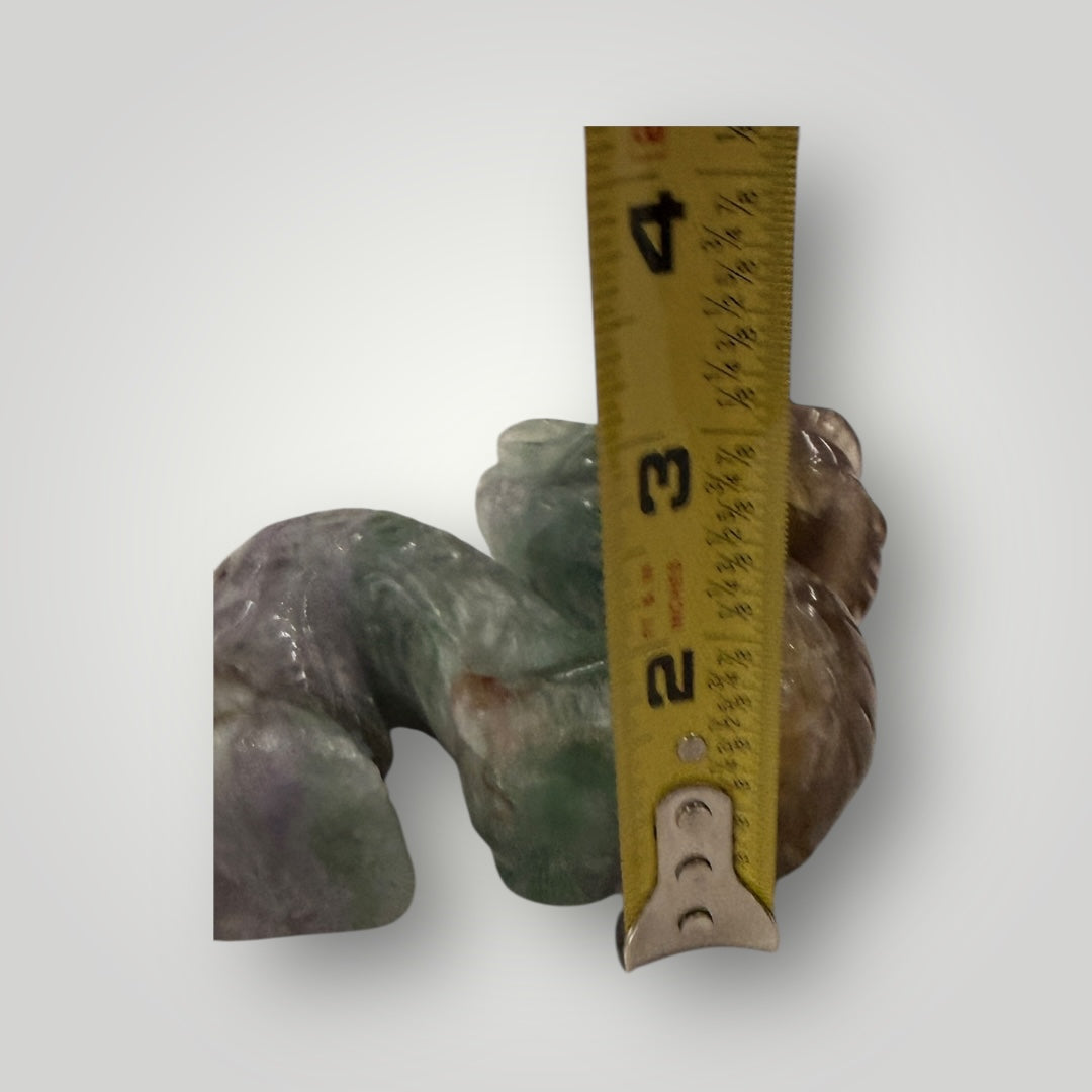 Unleash the mystical power of fluorite with this hand‑carved dragon sculpture. Known as a stone of clarity and protection, fluorite’s natural bands of purple, green, and blue shimmer beautifully across the dragon’s ornate form.
