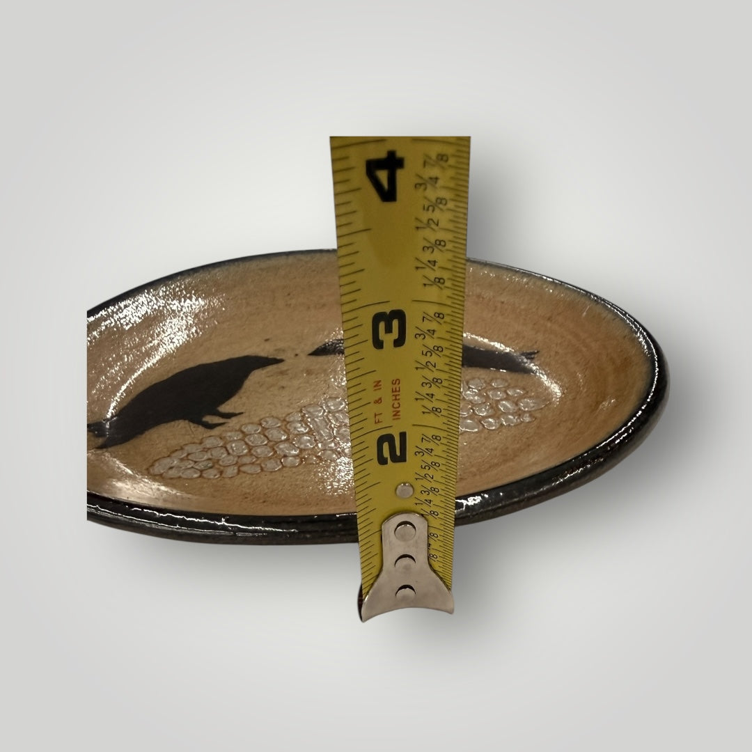 This particular crow motif embodies the whimsical artistry that made Monroe Salt Works famous, blending functionality with storytelling. Retired from production, it is now a rare find—perfect for collectors of vintage pottery, farmhouse décor enthusiasts, or anyone who appreciates heirloom-quality stoneware.