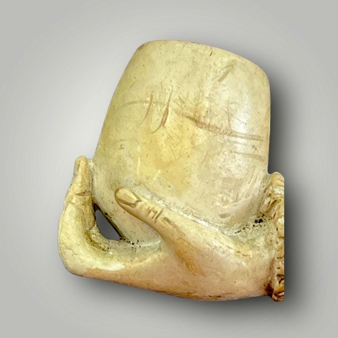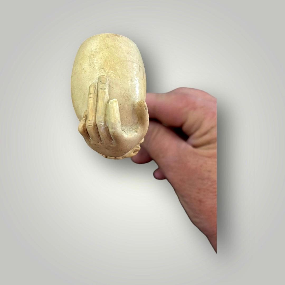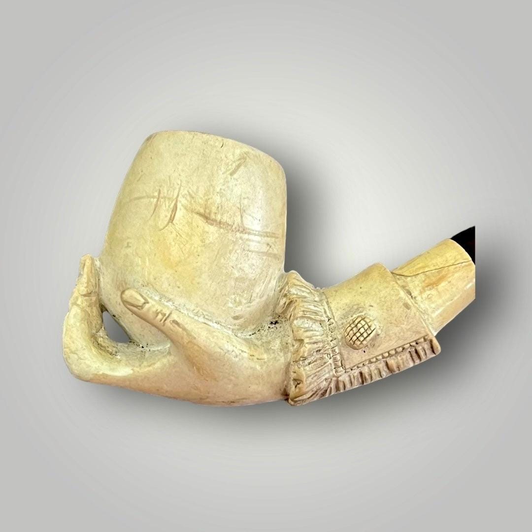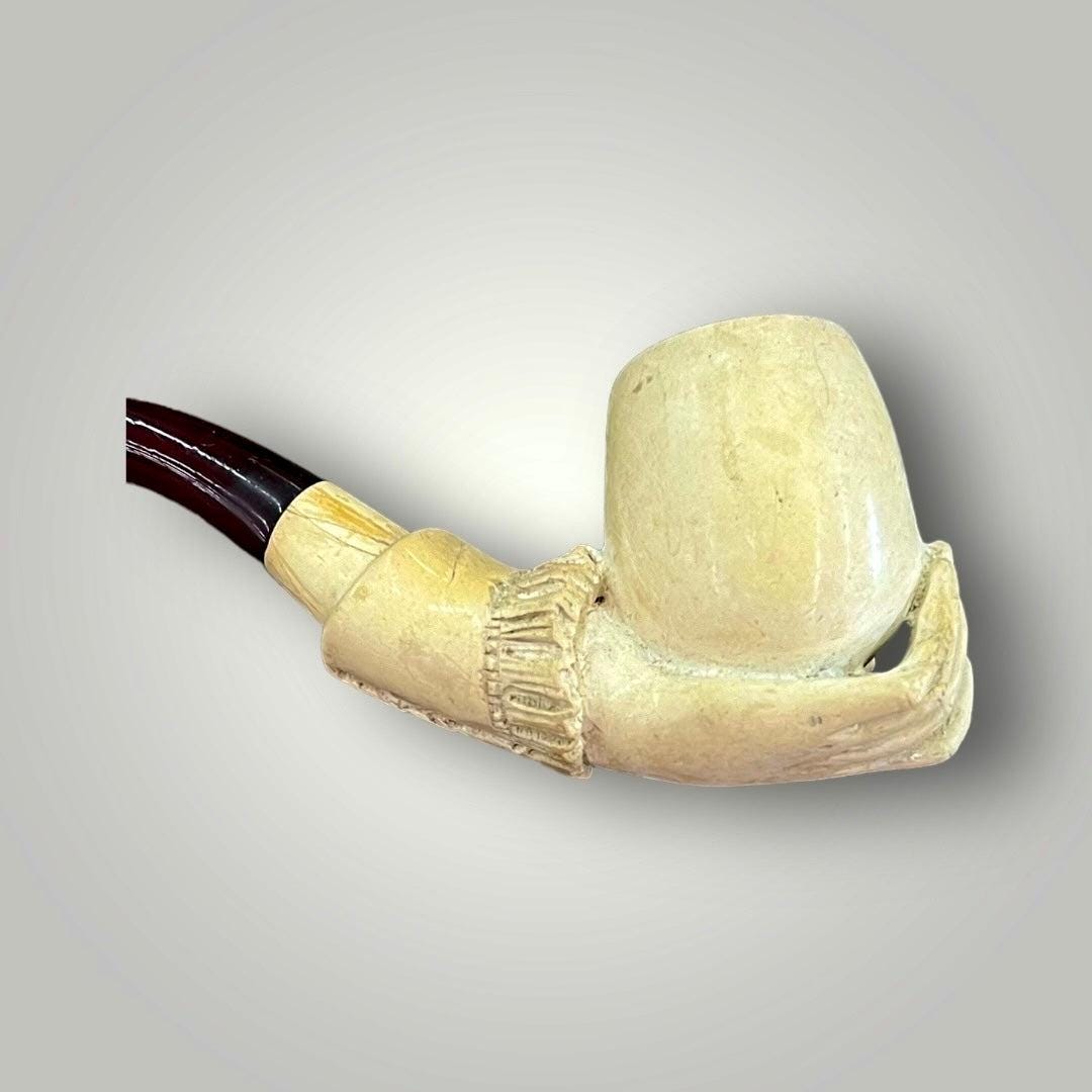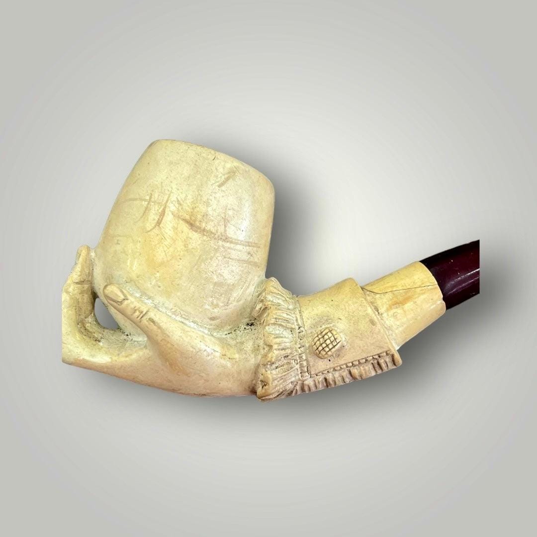 Vintage hand carved meerschaum pipe . Hand holding bowl.
